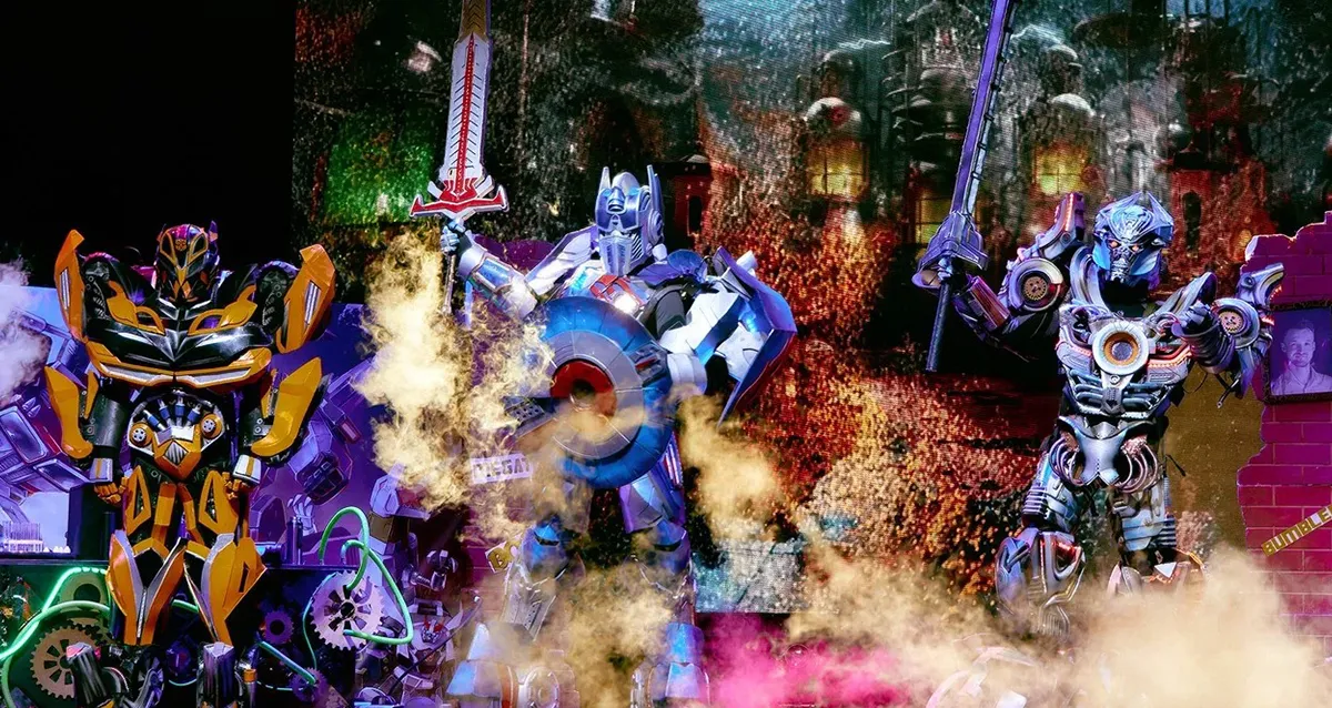 — три робота на сцене: Бамблби, Оптимус и Гальватрон;
